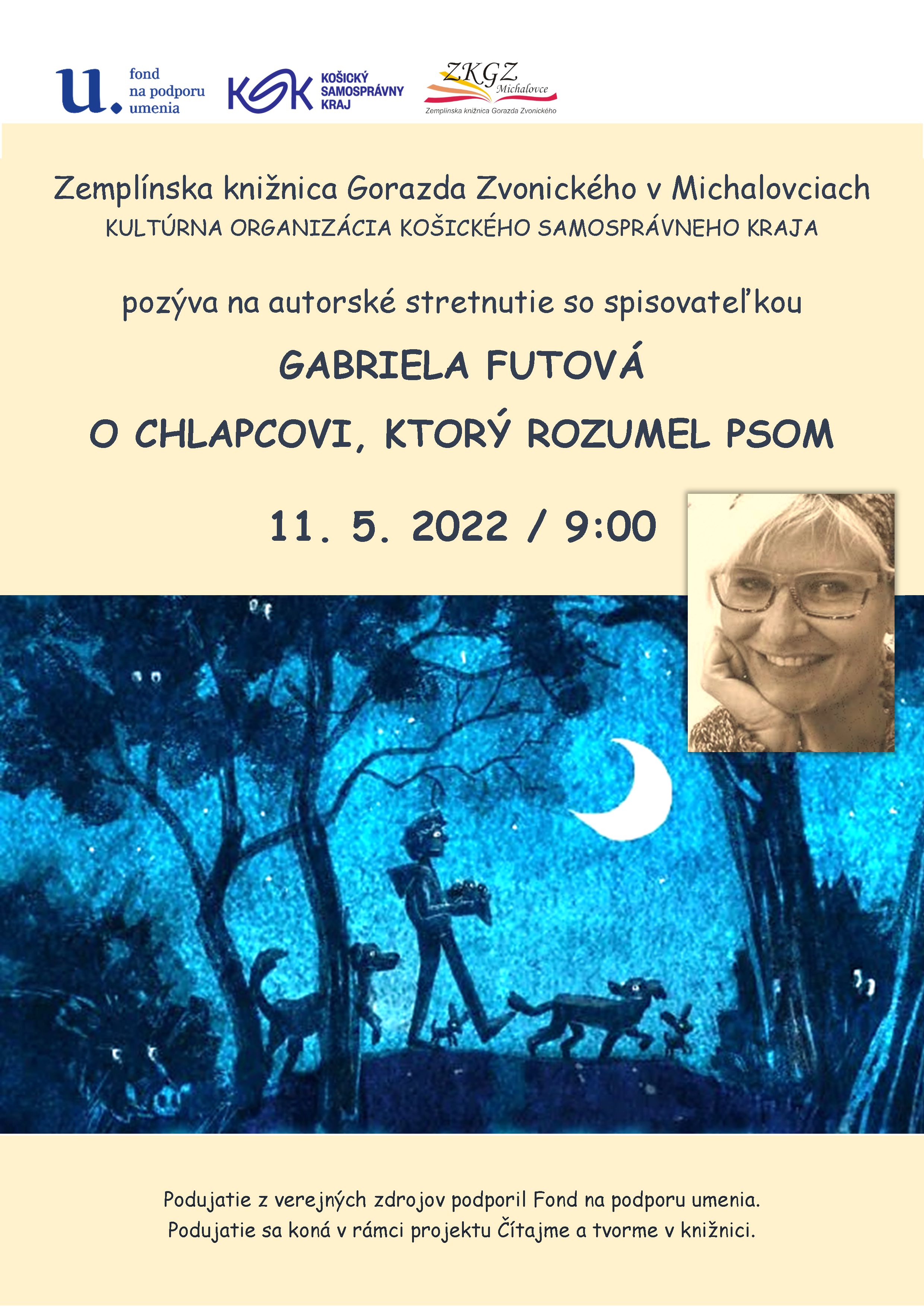 Zemplínska knižnica Gorazda Zvonického v Michalovciach pozýva na stretnutie s obľúbenou spisovateľkou pre deti Gabrielou Futovou, v stredu 11. 5. 2022 o 9:00 hod.