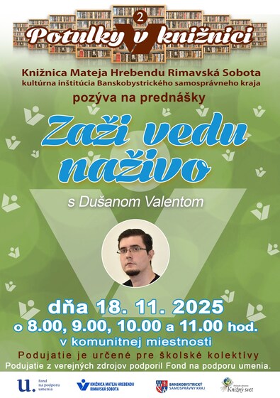 | Organizátor: | Fond na podporu umenia, Knižnica Mateja Hrebendu, Banskobystrický samosprávny kraj, OZ Knižný svet |